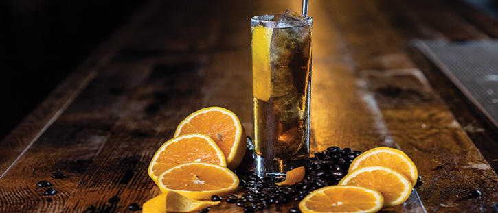 espresso & tonic - house-made vanilla cold brew, demerara syrup, tonic, orange peel