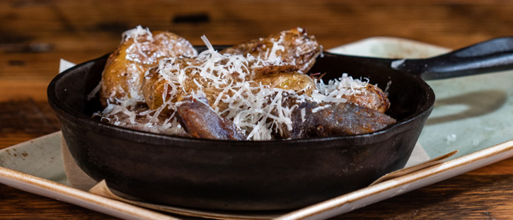 smashed and fried, herbed butter, maldon sea salt, parmesan cheese