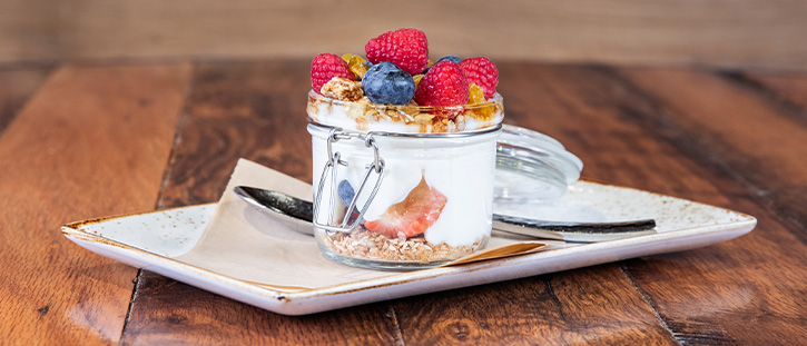 vanilla greek yogurt, toasted rolled oats, coconut flakes, almonds, sunflower seeds, blueberries, raspberries, golden raisins, lavender honey drizzle side $8/entrée $14