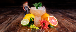 house honey butter washed rum, french orange liqueur, angostura bitters, muddled juniper berries, lime juice, yuzu juice, mint bouquet garnish