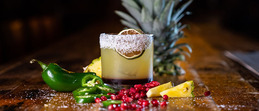 spicy pomegranate margarita – fresh-squeezed lime juice, pineapple and orange juices, jalapeño, sugar, house-made pomegranate syrup