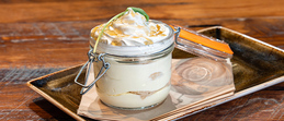 black tea ladyfingers, limoncello mascarpone, absinthe mist, lavender honey drizzle, sorrel garnish
